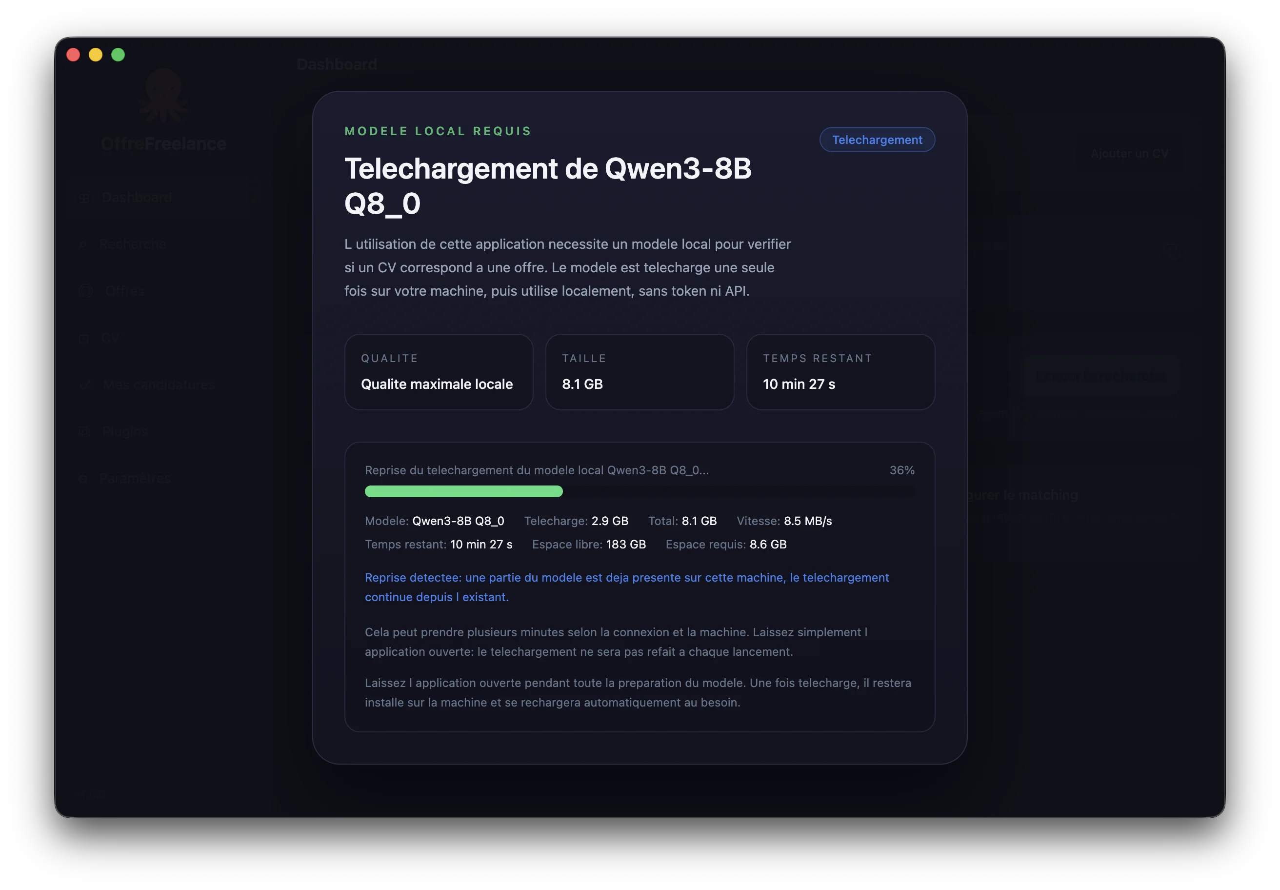 Erfüllt Ihr Gerät diese Voraussetzungen nicht, wechselt die App in den degradierten Modus: Die KI bewertet die Relevanz der Angebote nicht mehr, doch Sie behalten die Ein-Klick-Bewerbung. Angebote landen in einer Warteschlange und das Bewerben dauert nur noch wenige Minuten.